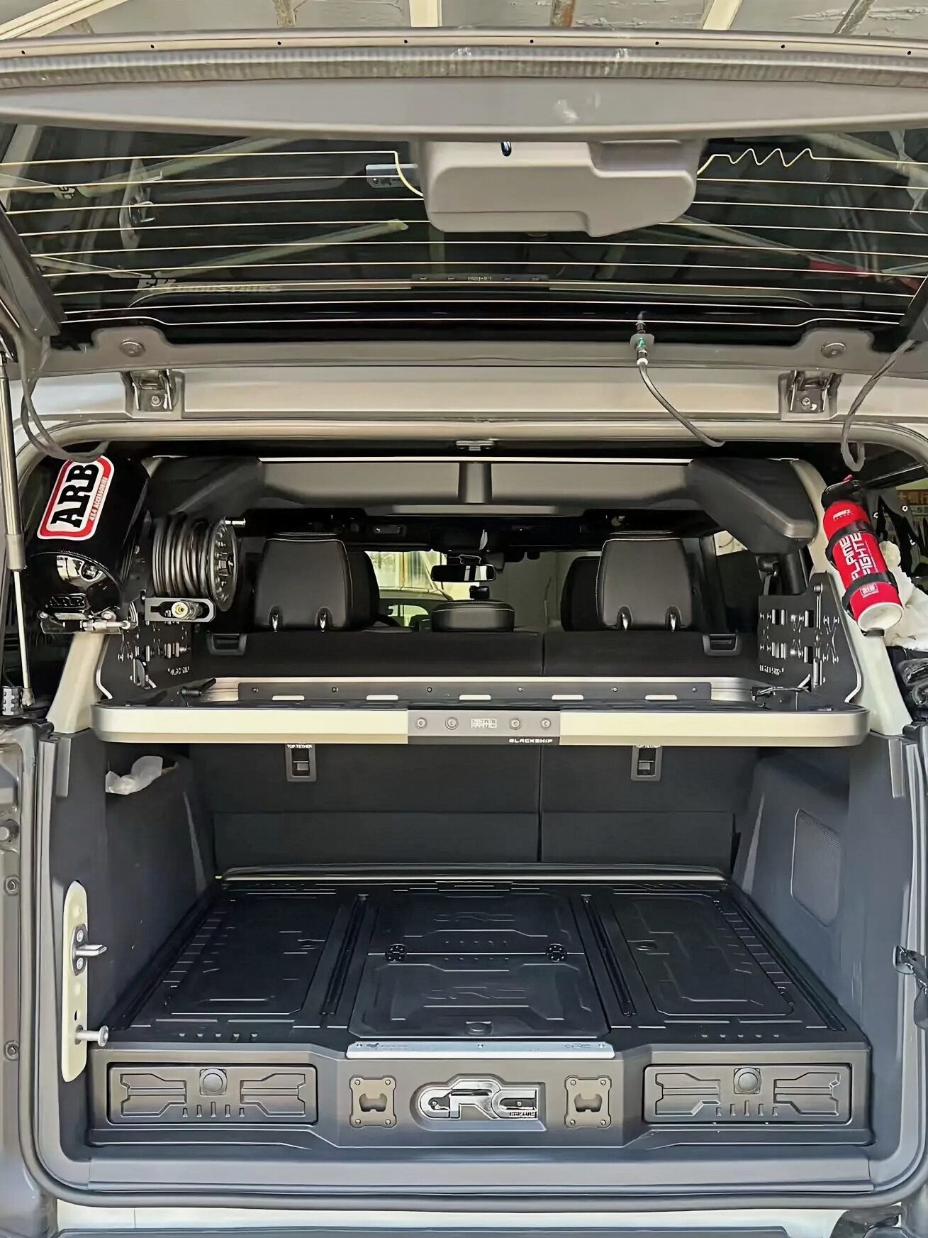 - 1, Rear cargo area roll cage / MOLLE panel