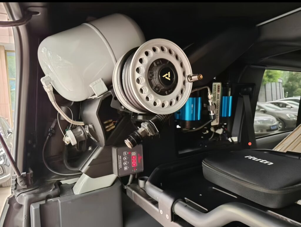 In this guide, we will show you how to install our compact air hose reel on a 4×4 – the same style used in the professional setups of LC71, Jeep, Ranger, Hilux and other onshore RIGS.